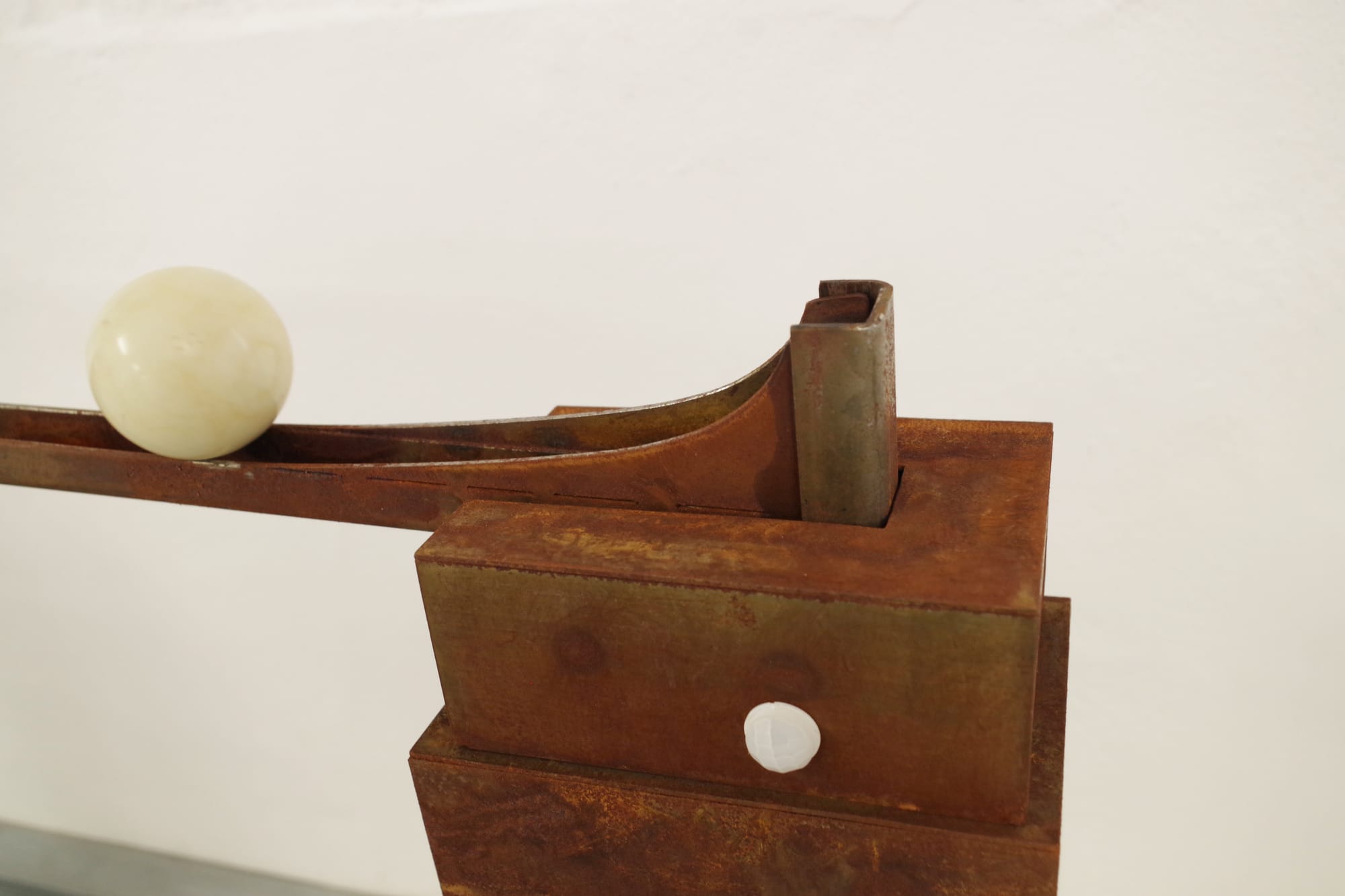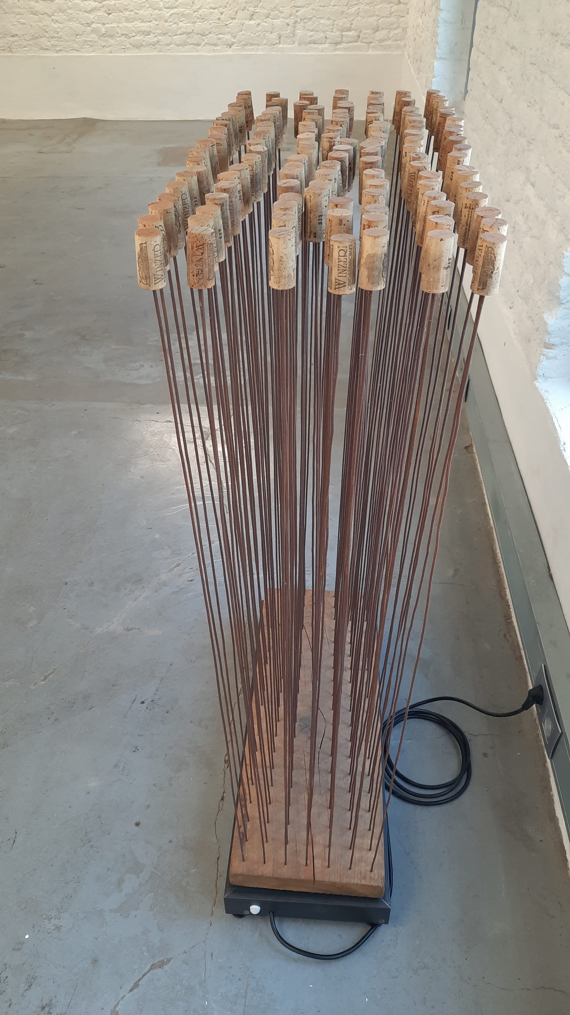 „PARCOURS“, Galerie VORNUNDOBEN - Ausstellung mit kinetischen Objekten von Christoph Steeger, vom So., 6.7. – 9.8. 2025 - Es geht um Eigenbewegung, Interaktion und Komplexität in dieser Ausstellung und so verdeutlicht es auch ihr Titel ,„Parcours“. Nicht nur durch die Galerie, sondern auch durch die Umgebung wird man sich bewegen müssen, wenn man die vollständige Begegnung mit den kinetischen Objekten von Christoph Steeger erleben möchte, denn der Rundgang durch die Galerie ist Teil eines größeren „Parcours“, welcher sich über zwei weitere Ausstellungsorte fortsetzt. In der „ART-Loft“ (Eupen, Boogie Hebel) und im „Zollhaus“ (Grenze Aachen/Raeren, KuKuK e.V.) Beim Durchschreiten der Ausstellung in der Galerie „VornUndOben“ kann man erfahren, dass alle kinetischen Objekte ein Netz bilden. Sie sind mit Sensoren ausgestattet und miteinander verbunden, indem ihre Bewegungen nur vom Besucher ausgelöst werden können. Der Besucher wird Teil des Bewegungsgefüges: steht er still, steht alsbald auch alles andere still, bewegt er sich, bewegt er damit auch die Dinge um sich herum. Somit ist es auch eine Rauminstallation, denn sie wird zum interaktiven Feld für jeden, der sie begeht. Dies ist am besten spürbar, wenn man allein hindurchgeht. Betrachtet man die Objekte im Einzelnen, erschließt sich ihre vielschichtige Komposition aus Rhythmik, Klang, Form, Farbe, Materialität und der Beschaffenheit der Oberflächen. Auch die Bewegungsgeschwindigkeit ist Teil des Charakters eines Objektes. Bei der Begegnung mit ihnen wird man hineingezogen in Abläufe, in kleinere Aktionen, welche die Objekte oft automatisch ausführen. Manchmal laden sie aber auch dazu ein, eine Bewegung in Gang zu setzen: Knöpfchen drücken erwünscht! – Das hat vordergründig einen gewissen Erlebnischarakter. Man will wissen, was das Werk kann, und der Technikinteressierte will wissen, wie es konstruiert ist. Insoweit kommen die Objekte etwas spielerisch daher und das Herumspielen mit Mechanik und Elektrik ist nach eigener Aussage auch ein Teil des Antriebes für den Künstler. Aber er nennt seine Objekte auch „poetisch“ und verweist damit auf die Bedeutungsebene jenseits der Erscheinung. “kinetai kai re ta panta“ – „es wird bewegt und alles fließt“, heißt es beim griechischen Philosophen Heraklit, der davon ausging, dass die sichtbare Bewegtheit der Ausdruck eines ständigen Fließens, eines universellen Werdens und Vergehens ist. Wer sich aber im stetigen Werden beheimatet, befreundet sich mit dem Vergehen, auch mit dem eigenen, und es wird leichter. So will der Künstler seine Werke auch als „leicht“ verstanden wissen. Ein mechanischer Kopf, der die Zunge herausstreckt, oder eine Flasche, die betrunken wankt, erscheinen humorvoll, eine Gruppe eigenartig rotierender Kegel erzeugt leichte Luftzüge. Dabei geht es dem Künstler auch um die Dramatik der Abläufe. Die sieben Kegel, beispielsweise, wirken beim ersten Blick wie ein aufgeregtes Feld von Bewegungen. Beim zweiten Blick erkennt man ein Gefüge, das sich ständig wandelt, denn jedes Objekt beschleunigt, verlangsamt und wechselt die Drehrichtung nach ganz eigenem Rhythmus. Beim dritten Blick fällt dann vielleicht auf, dass jedes Objekt in Phasen des exzentrischen Taumels eintreten und leise Klänge erzeugen kann. An manchen Objekten gilt es, sie sanft anzustoßen oder sie anzupusten. Wieder andere fordern vom Betrachter, dass er still und mit etwas Ausdauer verweilt und genau hinschaut, weil die Bewegung anders kaum wahrzunehmen ist. Christoph Steeger studierte Bildhauerei an der FH-Köln und wurde 1989 Meisterschüler von Prof. Anton Berger. Zeitgleich schuf er Bühnenbilder für den modernen Tanz und arbeitete bis 2024 als Film- und Fernsehausstatter. www.christophsteeger.de Vernissagen: 6. Juli 2025, 15:00 Uhr (VornUndOben), 13.Juli 2025, 15:00 Uhr (ART-Loft), 20.Juli 2025 15:00 Uhr (Zollhaus)