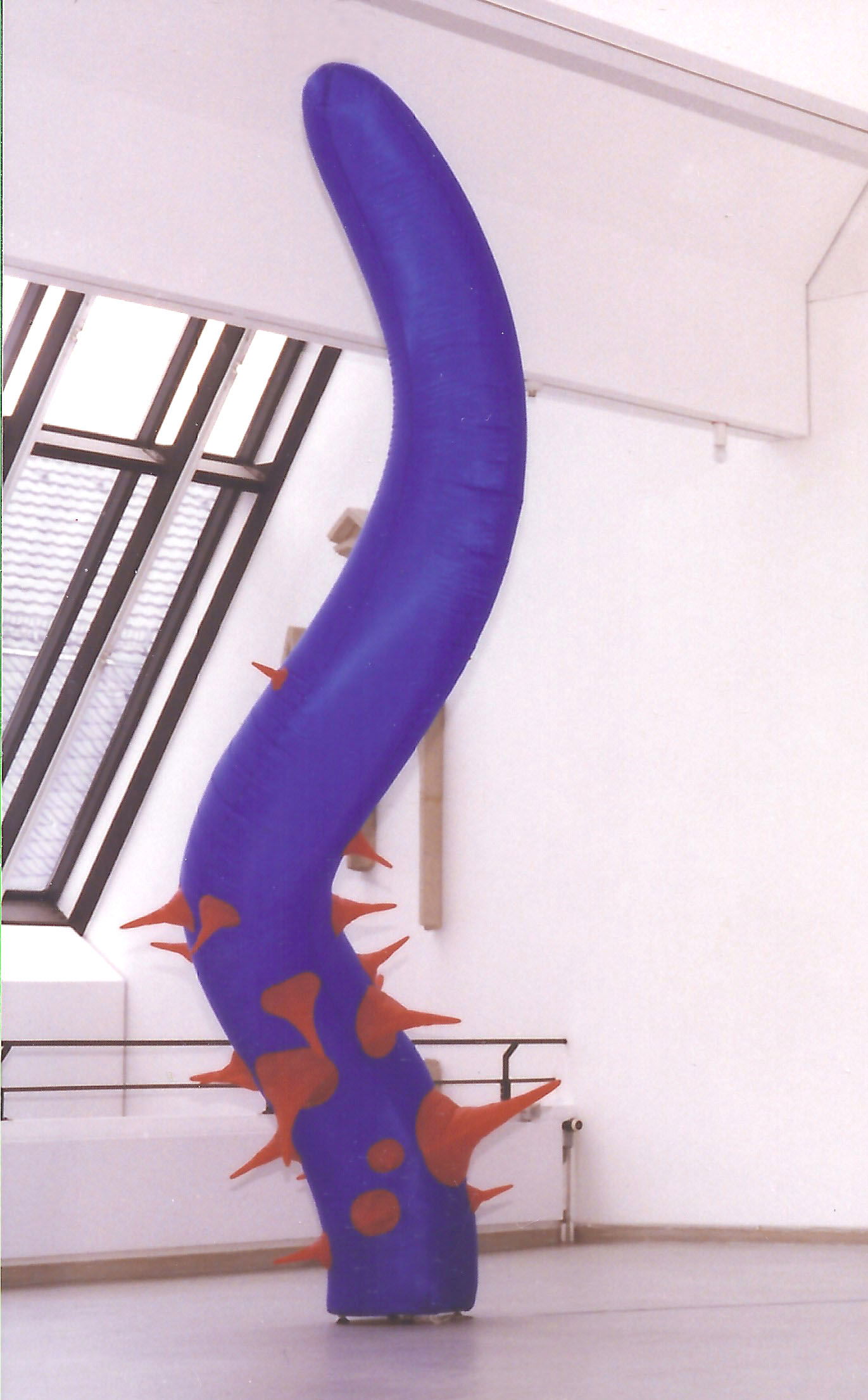 Link zum Video: https://vimeo.com/852120570?share=copy - Oder unter "Ausstellungsvideos" anschauen. - „INTRUDERS“ Die Installation aus organischen Objekten von Christoph Steeger sind Störungen in der klassizistischen Architektur der Villa Grün. Mit ihrer Farbenfreude, ihren biologischen Formen, ihren auf- und abschwellenden Bewegungen und ihrer raumgreifenden Größe beleben sie das Gebäude mit fröhlichem Geist, mal stachelig, mal rund, mal prall, mal erschlafft jedoch immer in Veränderung. Und weil Steegers Objekte auch einen technischen Kern haben, stehen sie in inhaltlichem Bezug zur Geschichte der technischen Errungenschaften und zu den Exponaten, die ständig im Wirtschaftsmuseum gezeigt werden. Die kinetischen Objekte versinnbildlichen dabei keinen Nutzen, vielmehr sind sie Ausdruck der Zyklen des Lebens, des Werdens und Vergehens, der Poesie.